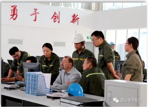 8月25日22:18,酯化系统进料,这是整个开机项目最关键的时候,意味着项目正式开机。这一刻是注定要载入新疆一号娱乐化工股份有限公司发展的历史中,在所有的一号娱乐人心中留下不可磨灭的印记。在确认所有条件已经具备,聚酯公司总经理王永刚宣布聚酯PBSA1线开机,随即PBSA1生产线车间主任曹殿强点开了开机的指令,大屏幕酯化系统开始运行,现场发出阵阵掌声。一直全程关注开机的外籍专家,也开始按照他们当地的习俗向现场的所有人派发“胜利果”。