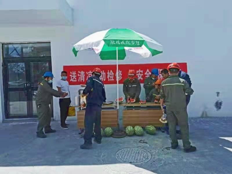 公司关怀送清凉气温节节攀升,高温酷暑考验着坚守在一线的员工,更牵动着公司领导的心,能源公司党总支书记带领班子成员为生产线上的干部员工送上西瓜、绿豆汤、绿茶防暑降温物品,给他们在炎热和艰苦的环境中带来一丝清凉和关爱。